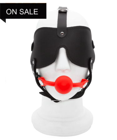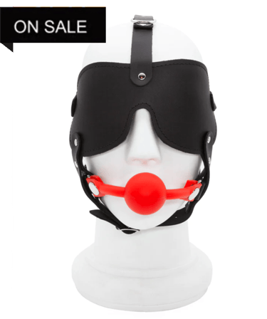 SILICONE BALL GAG AND BLINDFOLD HEAD HARNESS