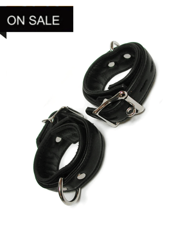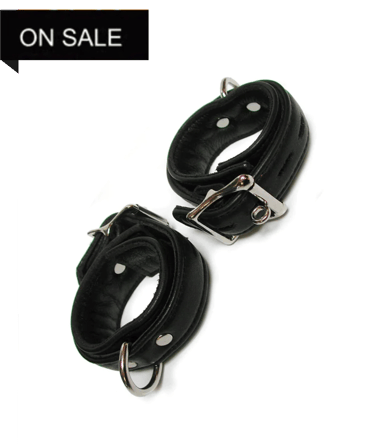 DELUXE PADDED LEATHER WRIST RESTRAINTS W/ D RINGS, BLACK