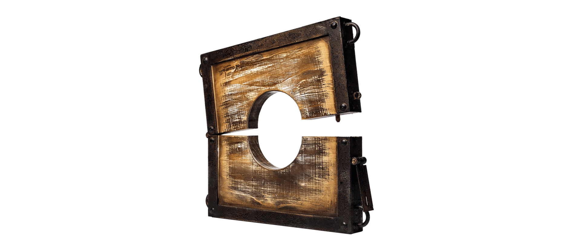 This set includes two padded neck inlays. Held in place by strong magnets, the comfortable leather inlays can easily be removed for people with larger joints. This neck stockade set also comes with two canvas sacks containing 6.5’ x 5.9’ of heavy-duty chains and 8 bow shackles made to the same high standards. Also included are two premium-grade steel mounts for fastening chains to ceilings or joists. The metal is casted in-house, and the stamp assures you of quality workmanship.