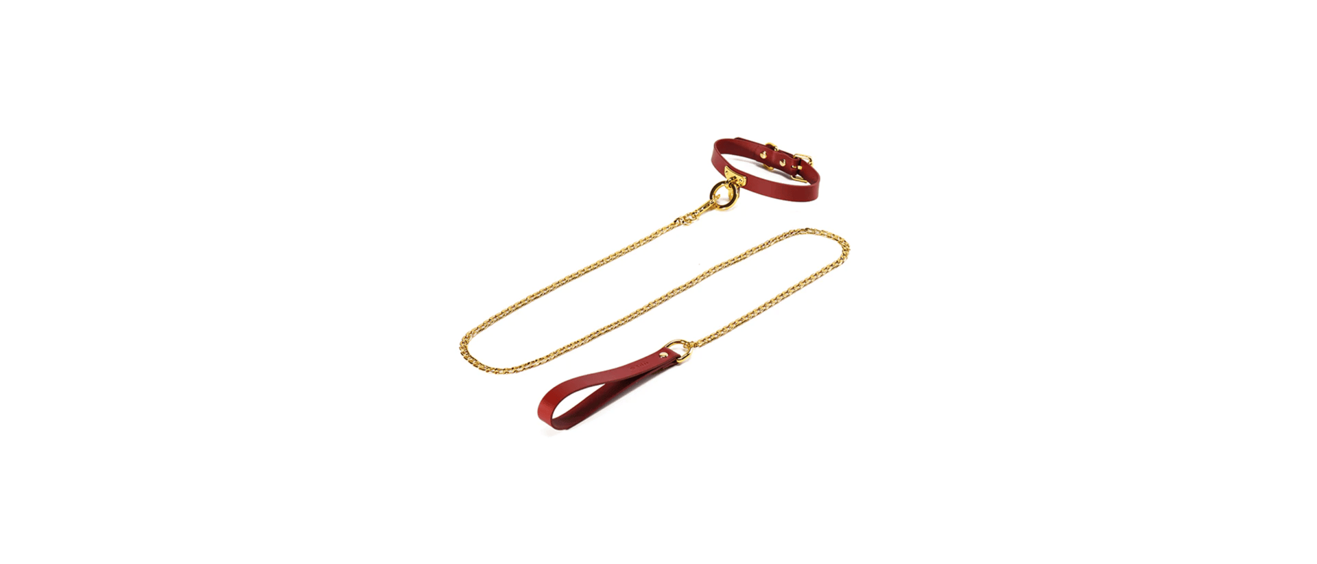 Leash, the pure leather handle and metal chain provide solid hold and an addition to the rituality. The 39.37 inches length allows unlimited play. The metal clip at the chain end allows single-hand operation with smooth locking.
