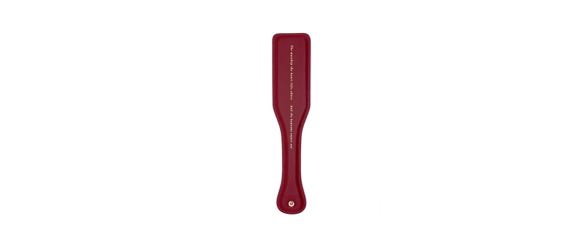 Leather spanking paddle, with certain elasticity, the medium hardness of this product provides a good paddling experience. The cushion filling under the leather surface distinguishes this paddle from other products. The holding feeling is also extraordinary.